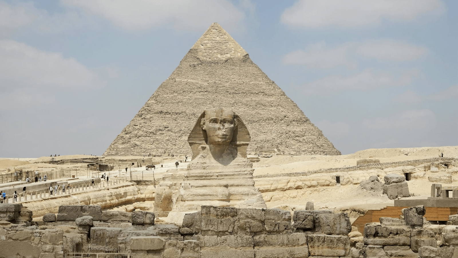 The Sphinx is a massive statue with the body of a lion and the head of a Pharaoh, believed to represent Khafre, located near the Giza Pyramids. It symbolizes ancient Egyptian power and mystery.