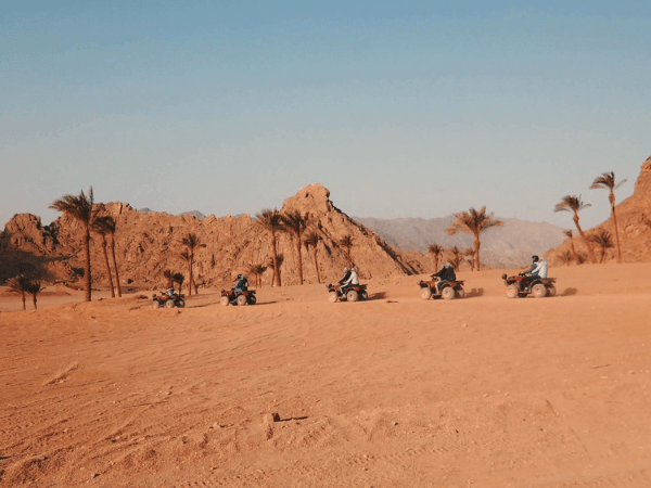 Il quad a Sharm El Sheikh offre un modo emozionante e avventuroso per esplorare il paesaggio desertico del Sinai del Sud. Questa attività emozionante ti consente di attraversare vaste dune di sabbia, terreni rocciosi e pittoresche viste del deserto, con le splendide montagne del Sinai come sfondo. Il quad è adatto a tutti i livelli, dai principianti ai motociclisti esperti, con guide professionali che garantiscono sicurezza e divertimento. Che tu stia cercando una scarica di adrenalina o un modo unico per vivere il deserto, Sharm El Sheikh offre un'esperienza indimenticabile in quad.