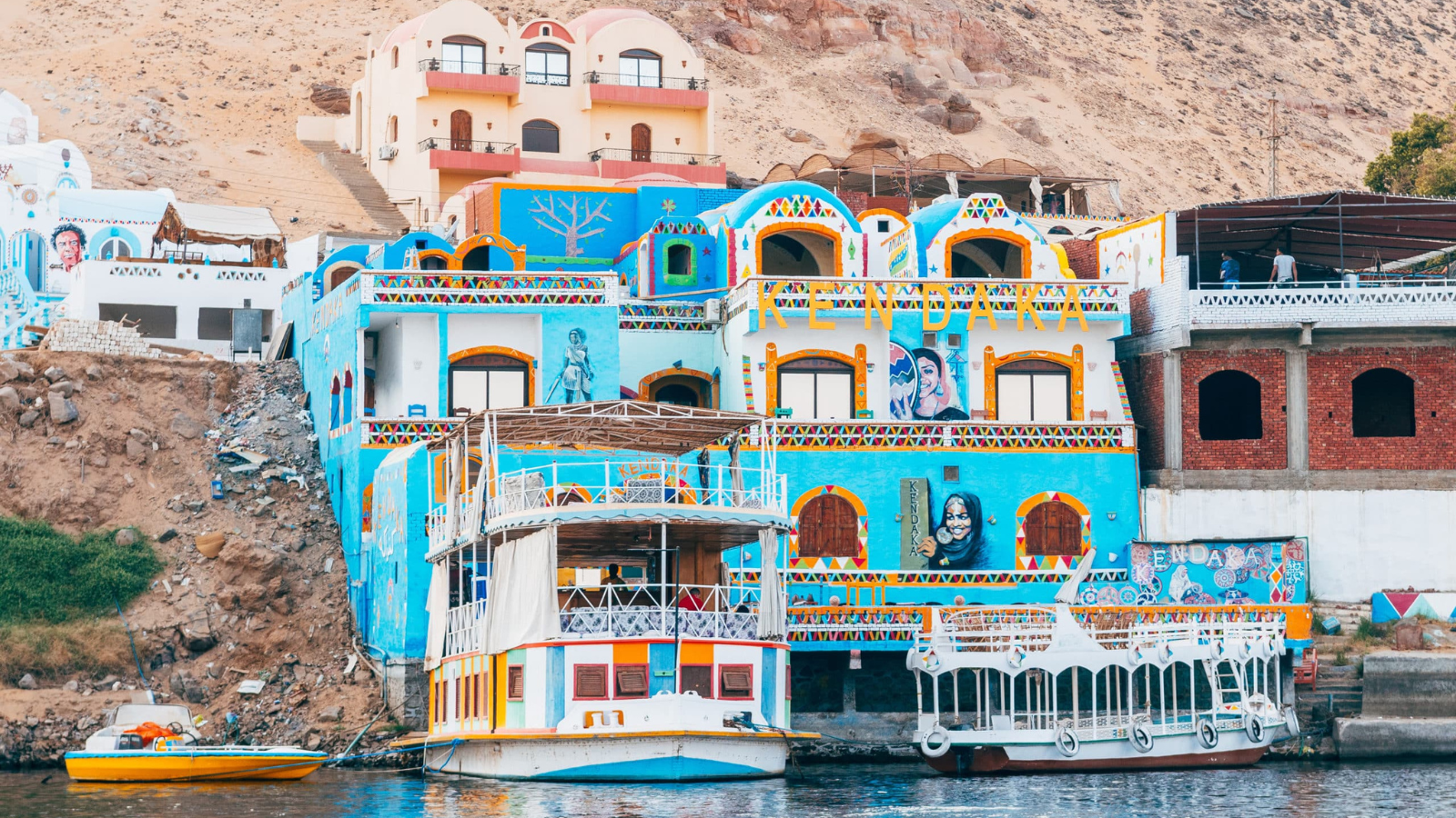 - El pueblo nubio (recorrido opcional): un pueblo colorido que muestra la cultura y las tradiciones nubias. Templos de Abu Simbel: templos excavados en la roca de Ramsés II y Nefertari con estatuas colosales.