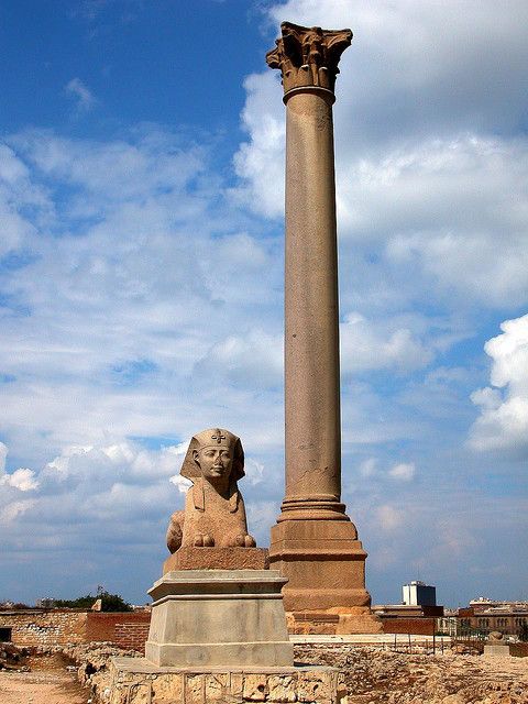- Columna de Pompeyo → Columna romana histórica en Alejandría y uno de los principales monumentos de la ciudad.