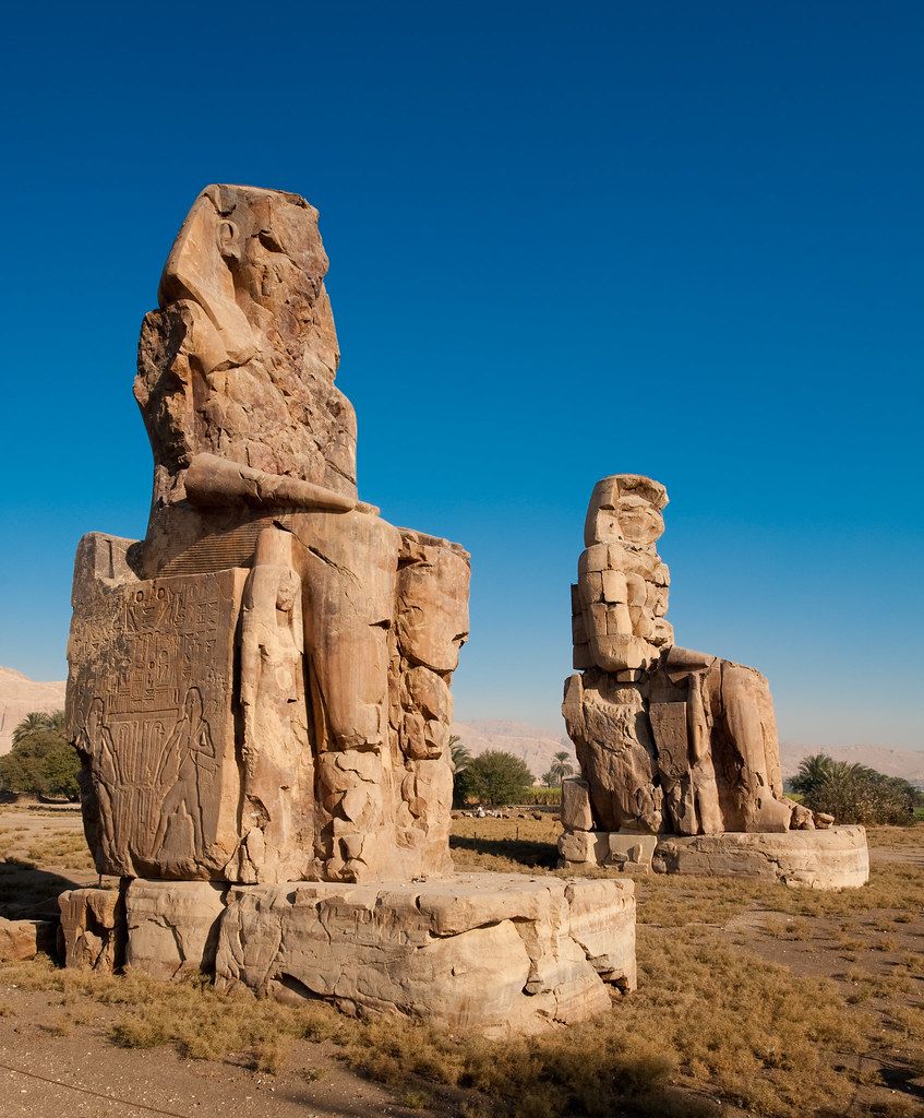 - Colosos de Memnón → Dos enormes estatuas del faraón Amenhotep III en la orilla oeste de Luxor.