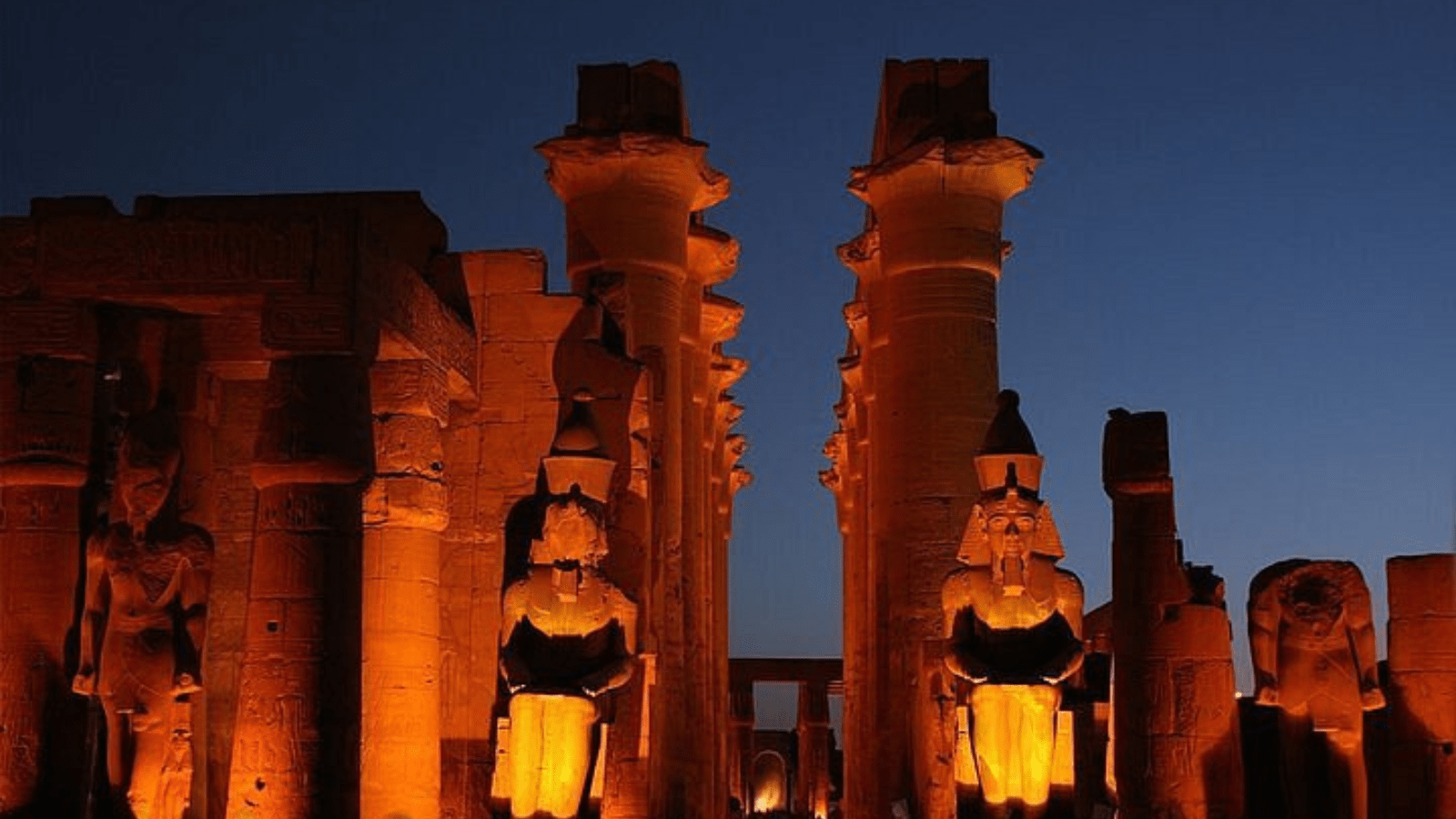 The beauty of the Temples of Karnak illuminated against the darkness of night as the pharaohs of the New Kingdom take you on a journey into Ancient Egypt during your stay in Luxor.
